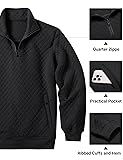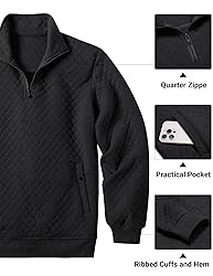 【SOFT FABRIC】: Men's quarter zip pullover made of high-quality, soft and against pilling fabric for staying cozy and keeping warm. Skin-friendly, durable, it can effectively resist the cold winter. 【FEATURES】: Men's quarter zip polo comes with a classic zip up closure, modern quilted pattern. The ribbed cuffs and hem ensure a secure fit. Mens quarter zip sweater includes a kangaroo pocket to hold small items like keys, phone, wallet, etc. 【MATCHING】: Ideal for layering, this men's 1/4 zip pullover pairs effortlessly with jeans, chinos, or joggers, making it a versatile addition to your fall and winter wardrobe. Nice classic solid pullover shirts will never go out of style. 【OCCASION】: Modern basic design makes this men's 1/4 zip up sweatshirts suitable for casual/work/school/sports/street/business/home/parties/outdoors, etc. It is a good choice as a gift for yourself, family, friends, boyfriend, etc. 【TIPS】: US size.This mens half zip sweatshirt is machine washable, making it easy to care for and maintain. Simply toss it in the wash to remove wrinkles and keep it looking as good as new.