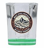 R and R Imports Great Smoky Mountains Gatlinburg Tennessee Souvenir 2 Ounce Shot Glass Square Green Base Single