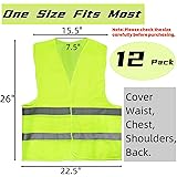 Package Included: 12 packs of high visibility safety vests are included, which is a sufficient quantity for your daily use and replacement. Our vest measures approximately 26 (L) x 22.5 (W) inch, which can cover your waist, chest, shoulders and back. Please check the size before your purchase. Breathable and Lightweight: The reflective safety vest is made of premium fabric and reflective strap, which is lightweight, breathable and reusable. It allows washing by hand, and is easy to dry in the air. (Dry clean and washing machine is not safe.) 360 Degree High Visibility: These safety vest with a bright fluorescent green color makes you stand out in the day. The reflective silver strips are wrapped on the front and back of the security vest, which can provide you with a 360 degree protection under daylight or low light conditions. Easy On and Off: These reflective mesh security vests are equipped with touch fasteners for quick on and off. They are strong enough to put together and can be used repeatedly. Perfect for storing in your house, workplace or car and ready when you need it most. Wide Application: Our construction work vest fits all kinds of body types and occasions. Suitable for running, cycling, dog walking, and outdoor utilities like construction, runways, subways, railroads, emergency work, security guard, volunteering and so on.