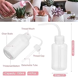 - PACKAGE INCLUDES - You will get 4 pack 150ml 5oz plastic safety wash bottles, which are enough to meet your daily use and replacement needs, or share with family and friends who are in need. QUALITY MATERIAL - Our tattoo wash bottles are made of quality plastic material, which are of good flexibility, elasticity, resistant to impact, stress cracking, easy to assemble and separate for cleaning. SQUEEZE BOTTLE WITH SIZE INFORMATION - The surface of the squeeze bottle has scale marks to allow you full control over how much water is released; The squeeze bottles for liquids have a capacity of 150ml 5oz. EASY TO USE - the bent nose makes watering your plants much easier, and allows you to get right to the base of the stem without getting the plant itself wet; The plastic squeeze bottles are suitable for indoor and office. MULTIPURPOSE - The squirt bottle is perfect for watering and feeding your house plants, and is suitable for storing bleach, washing labware, holding acetone and so on, practical and versatile.
