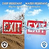 Size: 10 X 7 inches made of Heavy Duty Rust Free .040 Aluminum. Includes: Each package includes 2 Exit signs, excluding attachment accessories such as screws, zip ties, nails ect. Easy to Install: It comes with 4 pre-drilled mounting holes, one on each corner, for easy installation. High Quality: Our sturdy and strong metal sign is corrosion preventing, UV protected, waterproof, weatherproof, non-fading and lasts for at least 7 years indoor and outdoors. Visible Warning: Our Exit sign are bright and easy to spot