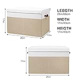 DETACHABLE DIVIDER - The toy box have a removable divider board. You can attach it by velcro, which is great for organizing different items separately, you can detach the divider for store bigger things, like blankets, large toys, etc. LARGE TOY BOXES - The size of toy chest is 26 x 17x 17 inches (66 x 43 x 43 cm), capacity more than 122 liters, large enough for large stuffed animals toys dolls. it Contrasting color design adds more beauty to your home’s decoration. LARGE CAPACITY - The closet storage box measures 18.9 x 11.02 x 7.87 inches / 48 x 28 x 20 cm, the capacity is larger than others, large capacity make them an excellent choice for keeping your space aesthetically pleasing, tidy, and well-organized. DURABLE & STURDY DESIGN - Closet bins made from premium linen fabric and thickened cardboard to ensuring sturdy structure and resistance to deformation, stackable and odorless, The delicate stitches contribute to the bins' durability, making them resistant to tearing. MULTI-PURPOSE - These baskets for closet organization can be used as shelves basket, wardrobe storage bins, closet organizers, under bed storage and storage for clothes, towels, blankets, sheets, children's toys, books, yarn, crafts supplies, pet products and more.