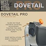 - What is a Dovetail Mount? A Dovetail Mount is used to attach accessories to your Seestar. Those include a Red Dot Finder Scope, additional cameras, or anything with a Dovetail Style Mount. To use, simply place the Dovetail Pro onto your Seestar. Now install your accessory onto the Dovetail Mount and your set! Our Dovetail Mount is Custom 3D designed and printed using ABS. ABS is known to be very strong and resilient to temperature changes. ABS is also used in other applications including Toy Building Bricks, Sports Equipment and Automotive components This does not include the telescope. This only includes the Dovetail Pro. When you are finished with your viewing session, remember to always remove the Dovetail Mount prior to powering down your telescope. Never power down with it attached! *This only includes (1) Dovetail Pro, it does not include the Telescope. *This is a telescope accessory.