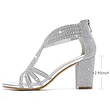 Gufobela Women's Rhinestone Sparkly Chunky Block Heel Sandals Open Toe Dressy Shoes with Zipper Closure for Wedding Prom Homecoming Hoco Formal Events