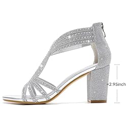 Sparkling & Elegant Women's Heels: Rhinestone accents and an open-toe design add sophistication and sparkle, making them ideal as dressy shoes Stable & Non-Slip: The 2.95-inch chunky mid-heel provides stability and comfort, making it suitable for standing confidently on various surfaces, including grass Easy to Wear: The back zipper and side elastic band make these rhinestone block-heeled sandals effortless to put on and take off, combining style with convenience Long-Time Comfort: The lightweight latex insoles and premium lining ensure these women's formal high heels are soft and breathable for extended wear Wardrobe Essential: Available in various colors, these bling shoes match multiple outfit styles and are ideal for various occasions such as parties, weddings, evenings out, bridesmaid duties, bridal events, homecoming, prom dates, proms, cocktail parties, and other special events