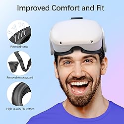 Improved Comfort and Fit: The PU Leather Foam Replacements is designed to provide a more comfortable and immersive experience while wearing the Oculus Quest 2 headset. Premium Materials: The AMZDM Quest 2 Face Pad is made with high-quality PU leather for enhanced comfort and durability. It includes a PU Leather Foam Replacement that provides a soft and sweatproof experience. Enhanced Air Circulation: Unique L-Shaped vent design of ventilation and exhaust holes which exhausts the gas generated in the VR eye cover without light leakage, relieves temperature, provides a more comfortable experience. Go Deep into vR: The improved nosepieces to solve the light-leakage problem around the nose, enjoy immersive vr experiences by using this comfy face pad for meta quest 2 accessories. Easy to Use: Designed for easy installation and replacement. The included Velcro makes it simple to attach and secure the face pad to the headset. The face pad can be easily cleaned with microfiber cloth, ensuring an enjoyable VR experience.