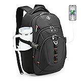 Swissdigital Design Laptop Backpack with USB Charging Port, Travel Backpack Fits 15.6 inches Computer, 31L College School Backpack for Men, Black | SD803-01
