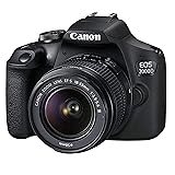 Canon EOS 2000D DSLRCamera Body - 24.1MP APS-C CMOS Sensor, DIGIC 4+ Image Processor, 3.0" 920k-Dot LCD Monitor, Full HD 1080/30p Video Recording, 9-Point AF with Center Cross-Type Point, ISO 100-6400, Up to 3 fps Shooting, Built-In Wi-Fi with NFC, Scene Intelligent Auto Mode , Creative Filters and Creative Auto Modes Canon EF-S 18-55mm F/3.5-5.6 DC III Zoom Lens - EF-S-Mount Lens/APS-C Format, 28.8-88mm (35mm Equivalent) ,Aperture Range: f/3.5 to f/38 ,One Aspherical Element ,Super Spectra Coating ,Micro Motor AF System , Rounded 6-Blade Diaphragm 24.1MP APS-C CMOS sensor and DIGIC 4+ image processor, which combine to provide both speed throughout the camera system as well as notable image quality. Up to 3 fps shooting is possible to suit photographing moving subjects—for up to 150 consecutive JPEGs in a burst or up to 11 consecutive raw frames—and Full HD 1080p video at 30 fps can also be recorded. For working in a variety of lighting conditions, the sensitivity range of ISO 100-6400 can be further expanded to ISO 12800 Shoot detailed images into the night with a large 24.1 Megapixel sensor, with up to 19x more surface area than many smartphones³, Take memorable, atmospheric pictures at night with large ISO sensitivity range of ISO 100-6400 (expandable to ISO 12,800) ,See the world through the optical viewfinder and experience the creative power of interchangeable lenses, Instantly review results on the user-friendly, 6.8 cm (2.7”) LCD screen Extending the capabilities of the camera, Canon's EOS Webcam Utility software lets you turn your camera into a versatile webcam by just connecting it to a computer via USB. Compatible with a variety of streaming apps, including ZOOM, YouTube Live, Microsoft Teams, and more, this software also maintains the ability to record internally while livestreaming.