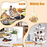 3 Tiered Fruit Bowl, Plastic Vegetable Storage with Bamboo Wood, Fruit Basket with Shopping Mesh Bags for Fruit Vegetable Storage Snack Party