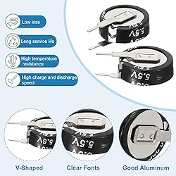 - Super capacitor is a versatile energy storage device, widely used in various areas. It can be used in power tools, and electric toys, and can also be applied to energy such as solar energy, car starting, small current applications, etc. Specifications: Shell color: Black Shell material: aluminum Rated voltage: 5.5V Capacitance: 0.22F Capacity deviation: ±20% Working Temperature: -20℃ to 70℃ Size: 16.7 x 11.7 x 5 mm/ 0.66 x 0.46 x 0.2 inch (L*W*H) Packing list: 2 Pcs x Super Capacitors Advantages: Super capacitors charge quickly, have a long service life, have high energy conversion efficiency, can withstand multiple charge and discharge cycles and a wider temperature range, are not easy to damage, and have high stability. Instructions: Super capacitors are resistant to high temperatures and have low losses. They can be used in car recorders, smart instruments, vacuum switches, digital cameras, motors, UPS, electric toys, etc. Note: Do not expose Super capacitors to direct sunlight.