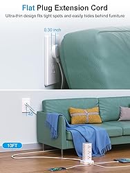 17 in 1 Power Strip Tower with USB: This surge protector power strip tower extends one socket to multiple outlets –one wireless charger, 12 AC outlets and 4 smart USB ports (2 USB-A and 2 USB-C). Charge up to 17 devices simultaneously, keeping your desktop organized. Turns a single socket into a versatile multiport charging station, perfect for your home, office, or dorm room 15W Fast Wireless Charging: Seamlessly energize your iPhone, for Samsung, or any other smartphone which support wireless charging simply by placing it on the wireless charger pad of the power tower. Your device will charge directly and efficiently, providing you with the utmost convenience and speed Flat Plug Power Strip & 10 FT Extension Cord: With a mere 0.30-inch ultra-thin flat-head plug design, this power strip sits flush against the wall and effortlessly fits into tight spaces behind sofas, nightstands, bookshelves, and headboards. The 45° right angle design creates an extra space for other plugs below without blocking. With a 10FT extension cord that's long enough to give you the freedom to use it anywhere - homes, offices, or college dorm rooms Smart USB Fast Charging: This power strip has 4 USB ports (2 USB-A and 2 USB-C), with a total output of 3.4A. Each USB A has a max output of 3.1A, and the USB C has a max output of 3.4A. The USB-C charges up to 30% faster than the standard 5W charger, saving you time. The flat plug tower is compatible with most USB devices such as smartphones, tablets, earphones etc. It's an ideal option for efficiently charging your diverse gadgets Surge Protection & Overload Protection: This power strip tower features an 1800J surge protector with overload, short-circuit, and over-current protection. The reset/off switch helps you save energy on the go. In case of overload, it shuts off automatically to keep your precious devices safe. Safeguard your gadgets and enjoy a reliable charging environment Space-Saving & Organized Power Tower: The mini vertical power tower, with a compact (3.15*3.15*5.79 inch) design, takes up less space than a traditional power strip when charging multiple devices. It has four rubber feet at the bottom, remaining rock-solid in place to ensure no sliding or falling. This surge protector tower with an extension cord helps keep your desktop neat and organized