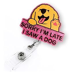 Funny Dog Badge Reel Retractable for Nurse RN LPN Medical Worker & Nursing Student | Sorry I'm Late I Saw A Dog Animal Badge Holder with Alligator Clip & 24” Durable Nylon Retractable Cord | Acrylic