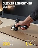 Cordless Quick Cutter: Fanttik C8 Nano equipped with a high-magnet motor for powerful performance, boosts cutting power by 15% with a high speed of up to 230 RPM. Effortlessly cut through cardboard, carpets, leather, and more, making your cutting tasks efficient and easy Three-Speed Adjustment & Quick Charging: Designed for designers, tailors, and DIY enthusiasts, this tool features three-speed settings to achieve optimal cutting results. With a fast 1-hour charge, it provides up to 40 minutes of continuous runtime, ensuring you can handle both urgent tasks and large projects with ease EasySwap Technology: The innovative spindle lock mechanism allows for easy and secure blade changes in just one step using the included metal accessory, making blade replacement safe, simple, and quick LED Display & LED Lights: The 35 mm diameter LED screen - See real-time battery life & speed settings at a glance for full control and the built-in LED lights ensure clear visibility under any lighting conditions, significantly improving cutting accuracy and efficiency C8 Nano electric scissors come with 2 blades and are compatible with blades from other Amazon electric scissors. The rotating blade can cut materials up to 1/4'' thick