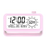 YHFITN Digital Alarm Clock Night Light Visual Timer, LCD Time Reminder with 3 Alarms, Snooze,Temperature Display, Ideal for Family Education Teaching and Time Management Gifts for Kids (Pink)