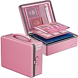 ENGPOW Fireproof Document Box, Hard Case File Box with Fireproof Zipper&Lock, 6400°F Heat Insulated Fire and Water Resistant File Organizer Storage Safe for Important Documents Laptop Cash, Pink
