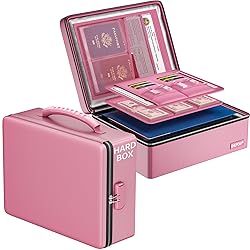 - ENGPOW Fireproof Document Box,Hard Fireproof Box with Fireproof Zipper&Lock,6400°F Heat Insulated Fireproof Water Resistant Safe Box File Organizer Storage Box for Important Documents,Valuable,Pink