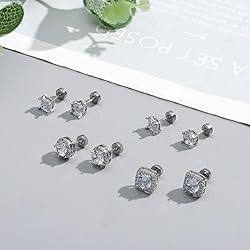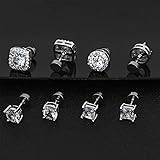 Package included: You will get 4 pairs stainless steel cubic zirconia stud earrings for men women, silver color and different styles, satisfy you different everyday dress up demands. Different cubic zirconia earrings have different glamour Premium material: Our men earrings made of hypoallergenic 316L stainless steel and AAA+ Cubic Zirconia Inlaid, nickel-free and lead-free. The surface is polished with excellent texture the earring look very shinny and smooth. 316L stainless steel is surgical grade, not cause any damage to human body and not easy to break, tarnish, corrode or rust. AAA+ is premium zircon. The whole zircon is transparent and flawless with high shiny. Our hypoallergenic earrings will be a better choice Unisex design: The stainless steel earrings are simply designed, different shapes and sizes Cubic Zirconia inlaid, lightweight and comfortable to wearing, a variety of styles are provided. Suitable for both men and women to wearing. Our unisex earrings are fashion and exquisite, which can win more compliments. Beautiful, fashionable and retro Wide application: These men earring sets with different styles, you can wear our diamond earrings to attend many kinds of occasions, such as daily wearing, wedding, holiday, date, prom, beach party and more Ideal gift: These unisex stud earrings can be a sweet gift for your family and friends on anniversary, birthday, ceremony, Christmas, Mother' s day, Valentines' day, Thanksgiving day etc. You will love them