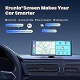 Wireless Apple CarPlay & Android Auto Functionality: Enjoy hands-free music, calls, and messages with voice control. Access real-time navigation through apps like Apple Maps, Google Maps, and Waze, featuring live traffic updates and route recommendations Enhanced Responsiveness: Powered by 5G Wi-Fi, Bluetooth 5.0, and an advanced industry chip, our engineers have optimized screen performance to be 1.35 times smoother than similar products. Touch commands are processed 25% faster, offering exceptional responsiveness, especially when using CarPlay or Android Auto High-Performance 9.26-Inch IPS Touchscreen: Say goodbye to screen glare in daylight! With 550 cd/m² brightness, a 1000:1 contrast ratio, and 16.7 million colors, our display outshines others by approximately 18%. Its vibrant visuals rival a tablet, setting it apart from standard car screens Best-in-Class Screen Resolution: Featuring a crystal-clear 1600x600 resolution, one of the highest in CarPlay/Android Auto smart screens, our display offers up to 1.5 times the clarity of competing products, which max out at 1082x600 or 1170x439 resolutions Exclusive OTA Updates: Krunia sets a new standard with OTA (Over-the-Air) updates, enabling instant firmware upgrades. Stay current with the latest features and enhancements effortlessly, ensuring your device always operates at its best 4 Audio Output Modes & Steering Wheel Control: After connecting via CarPlay or Android Auto, enjoy audio through your car speakers using Bluetooth, AUX, or FM. If your car has multifunction steering wheel controls, you can effortlessly switch songs, adjust the volume, or answer calls Durable and Reliable Performance: Built to endure temperatures from -20°C to 70°C, our product provides stable connections and seamless functionality. Rigorous 72-hour operation tests in harsh conditions ensure reliability. Plus, we offer 24/7 support and a 2-year warranty with full re-funds or free replacements Easy Installation & Plug-and-Play: Forget complicated setups! Simply plug into your car’s cigarette lighter, and you’re good to go. It’s perfect for upgrading your car system without altering the original dashboard Safer Parking with Backup Camera: Equipped with a waterproof rearview camera and night vision support, the Krunia 9.26-inch wireless CarPlay screen automatically displays the reverse image when parking, making night-time maneuvers safer and easier