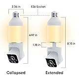 Smart Lighting and Wide 160° View Security Camera - A motion-activated light and security camera are conveniently powered by any light fixture for effortless outdoor protection and automation. Sees more with a 160° wide-view bulb camera for enhanced protection. Telescoping Internal Rod and Manual Adjustable Pan &Tilt, Easy Bluetooth Setup - Extend the camera up to 1.2inch, pan 360° and tilt up to 90° to find just the right angle. This light bulb camera applicable to E26 socket ( 120v 60hz input) and enables Bluetooth setup (No need to scan QR codes.) and works with Alexa/Google Assistant/IFTTT and Wyze Rules for smart home automation. Clear 2K HD Resolution with WDR and Color Night Vision - Protect double the area in greater detail with high-definition clarity. WDR evens out darker and lighter spots in the same scene for a more even picture. Dimmable 800 Lumen LED Bulb - Customize the brightness on these long-lasting LED bulbs to achieve the perfect lighting. 24/7 Local Recording with MicroSD Card* - Don’t miss a thing with continuous local recording to a microSD card up to 256 GB. No subscription required. (*MicroSD cards sold separately. ) Two-Way Audio & Free detection alerts - Speak to people and pets from anywhere right from your smartphone. Get notified on your smartphone when motion and sound are detected. AI Notifications and Descriptive Alerts – With Cam Unlimited Pro (subscription required), customize detection and alerts for People, Pets, Packages, and Vehicles, and receive detailed descriptions of detected events. Group Light Control with Wyze Accessory Bulbs – Expand your smart lighting by pairing up to 5 accessory bulbs for full coverage (Accessory Bulb sold separately). NOTE: The Bulb Cam already features a built-in LED light. Accessory Bulbs are designed to extend lighting coverage or replace existing bulbsfor "Group Light Control", and are only compatible with the Wyze Bulb Cam.
