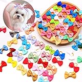 Super Value 100PCS - The cute doggy bows set contains 100 pieces/ 50 pairs puppy bowknot in 60 different Colors. Sufficient to attach to pet hair for a fancy hairstyle.The size of bows is about 1.5x0.98inch, which is better for small and medium pets. Soft & Pet-Friendly Materials: Made with gentle, non-irritating materials and a stretchy rubber band for a secure, comfortable fit that won’t tug fur or harm sensitive skin. Strong & Durable - The dog hair accessories for small dogs are made of high quality grosgrain ribbons and rubber bands. The handmade bow is sewn on the back of the rubber band and glued together with hot glue for double fixation. All bows keep good shape, lovely and beautiful. Ideal Gift for Dogs: Every dog also needs careful care and dress up, our pet dog hair bows use different pink tones combined with rhinestones, pearls and other decorative embellishments, very cute and varied, perfectly in the dog's birthday and other days for your dog or friends and family members of small pets, so that each puppy is more delicate and different, but also give these gift for pet stores, pet owners, pet groomers! Wide Application: Our dog hair accessories are very versatile, dogs can wear them on different occasions, such as daily walks, photo shoots, birthdays, weddings, festivals, pet parties, picnics and so on, and they can also be used as filming props to take beautiful photos or short videos for your pets to record the beautiful moments, keep your dog's cuteness and elegance, and instantly attract everyone's attention.