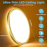 libtit 12 Inch Gold LED Ceiling Light with Night Light 1800K, 3000K/4000K/6500K Dimmable Flush Mount Lights with Remote Control, Low Profile Lighting Fixtures for Bedroom Bathroom Kitchen 2 Pack