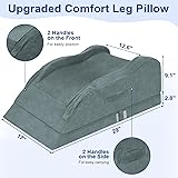 - Adjustable Leg Elevation Pillow for After Surgery, Swelling, Sleeping or Rest - BEST OPTION for elevating the leg above heart level, facilitating blood circulation and alleviating leg pain. Specifications: - Fabric: Crystal Velvet - Filler: Memory Foam, High Density Foam - Size: 29"x17"x11.4"(LxWxH) - Weight: 4.63LB Features: - Adjustable Height(7.1" & 9.8") is enough to raise your legs above heart level, no matter your legs length. - The leg pillows for sleeping adopt foam with different hardness, which provides enough support for your leg while brings you a soft and comfortable experience. - Two handles on the front make it easy to pull and position your leg raise pillow, and the side handles are for carrying. - The bottom of the pillow covers are designed with non-slip silicone particles to prevent the leg pillow from moving during use. Warm Tips: The item is vacuum-packed for shipping. Please wait for at least 24 hours to fully expand after receiving the package.