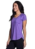Made from a lightweight, smooth, super soft striated space dye fabric with a touch of spandex for comfort Regular length with a slightly longer hemline in back for added coverage Flattering silhouette and scoop neckline for a stylish look Easy relaxed fit for breathability and comfort Fashionable basic women's tee is great for wearing on its own or layering over a sports bra for the gym, perfect for fashion outfits, lounging and pajamas, yoga and more