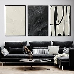 - Transform your living space with Pigort's Abstract Wall Art for Living Room – a stunning set of three large framed canvas paintings that bring elegance and modernity to any room. Featuring a captivating black and white palette, these 3D textured artworks offer both visual depth and a minimalist aesthetic, making them perfect for bedrooms, guest rooms, hallways, and home offices. The large 24"x36" size ensures that each piece commands attention, while the strong packaging guarantees safe delivery right to your door. Elevate your home decor with Pigort's timeless and sophisticated abstract wall art today!