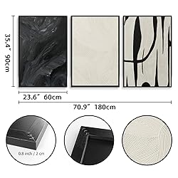 Pigort Abstract Wall Art: Elevate your space with this stunning black and white large framed canvas wall art, meticulously crafted to bring a modern minimalist aesthetic to any room. 3D Textured Canvas Design: Featuring richly layered 3D texture, this artwork adds depth and dimension, creating a dynamic visual experience that enhances living rooms, bedrooms, or hallways. Set of 3 Modern Art Pieces: This curated set includes three 24"x36" framed paintings, perfectly sized for impactful wall displays in your home office, guest room, or entryway. Modern Minimalist Style: Designed with clean lines and bold contrasts, this Pigort abstract wall art complements contemporary decor, making it ideal for those who love sleek, sophisticated interiors. Ready-to-Hang & Easy Installation: Each piece comes fully framed with hanging hardware, allowing for quick and effortless setup—perfect for immediate home transformation.