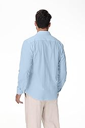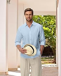 【Fabric】This men's long-sleeve linen shirts is made from a cotton-linen blend, offering you a comfortable, cool, and breathable wearing experience at all times. This casual linen shirt keeps you fresh and comfortable even on the hottest summer days, making it the perfect choice for your summer wardrobe. 【Designed】Men's linen beach shirts is crafted from lightweight, breathable fabric, keeping you cool and comfortable all day long. The minimalist long-sleeve design is perfect for summer, complemented by pure white buttons that effortlessly pair with any color, exuding a sense of simplicity and elegance. This stylish yet relaxed piece allows you to bask in the sunlight and fully embrace the bright, leisurely days of summer. 【Occasions】This button down shirt is suitable for a variety of occasions, causal, beach , vacation, wedding, summer , date, and party. In daily wear, it effortlessly highlights your charm. This casual shirts also makes an excellent gift for fathers, sons, or friends. 【Easy Match】Our summer shirt are available in a variety of sizes and colors for you to choose from. The sizes follow the US standard size, so please refer to our size chart to select the one that fits you best. 【Wash care】This mens beach shirts is recommended for both machine washing and hand washing. Please use cold water for washing and drying to protect the fabric's texture and color.