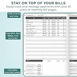 STAY ON TOP OF YOUR BILLS FOR 10+ YEARS – Keep all payments organized in one place with this easy-to-use monthly bill planner and organizer. Track due dates, amounts, and payments to never miss a bill and stay financially stress-free. CLEAR LAYOUT FOR QUICK TRACKING – Each page of home finance and bill organizer includes structured columns for bill name, due date, amount, and payment status, making it easy to see upcoming obligations at a glance and track your progress over time. LONG-TERM FINANCIAL ORGANIZER – With space to cover 10+ years, this bill payment tracker monthly organizer helps you create consistent financial habits and maintain accurate records. A practical budgeting tool for home, office, or small business use. LAY-FLAT BINDING, 120GSM PAPER & STICKERS – This 5.8 x 8.3" monthly bill payment book features a durable eco-leather hardcover, thick 120gsm paper, lay-flat binding, pen loop, elastic band, bookmark, and storage pocket for bills and receipts. 60-DAY GUARANTEE – We will exchange or refund your bill ledger book monthly for home if you aren’t satisfied with your saving money book. Reach out to us via message to refund your budget planner and monthly bill organizer with pockets.