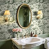 Livelynine Nature Landscape Wallpaper Peel and Stick Antique Vintage Green French Country Toile Wallpaper Removable Deer Tree and Bird Natural Countryside Nature Contact Paper Self Adhesive 17.5x78.8
