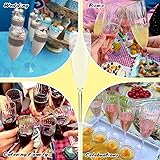🥂【Package Includes】--You will get 24 clear plastic champagne flutes, size 8.1 x 2.4 x 2.2in/20.7 x 6 x 5.5cm, capacity 6oz/180ml. Lightweight and portable, saves storage space, and meets your daily use needs. 🥂【Easy to Clean】--The disposable champagne glasses can be discarded directly after use, no need to worry about cleaning. Especially suitable for large events or parties, they can greatly save your time and energy, allowing you more time to enjoy the time with friends and family. Of course, if you wish to reuse them, these champagne glasses can also be easily hand washed. 🥂【Sturdy and Durable】--The disposable plastic champagne glasses have been carefully designed to be sturdy and durable for both everyday use and special occasions. At the same time, the mouth of the glass is smoothly handled to ensure that you can feel the ultimate comfort when you raise your glass for a drink. 🥂【High Quality Material】--The clear champagne flutes are made of transparent PS plastic, which is safe to use. It not only ensures the transparency and high cleanliness of the product, but also embodies the concept of environmental protection with its recyclable characteristics. 🥂【Widely Uses】--The plastic champagne flute is suitable for a variety of occasions, such as weddings, engagements, birthday parties, graduations and so on. Whether indoor or outdoor, they can add a touch of elegance and convenience to your party.