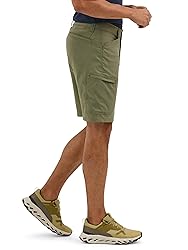 REGULAR FIT. Designed with a regular fit through the seat and thigh, these men's utility shorts are constructed with functional features to keep you comfortable and prepared all day long. Inseam: 9". STAY COOL. Sweat-wicking technology helps pull moisture away from your skin so you can stay drier and cool on outdoor pursuits. STRETCH COMFORT. Designed to move, these shorts are made with nylon-stretch fabric giving you the freedom to stretch, bend and move around in complete comfort. UV PROTECTION. Perfect for hiking and long days outside, these shorts feature built-in UPF technology for extra protection from the sun. ON-THE-GO STORAGE. A total of six pockets help keep your small valuables secure when you're on the go: 2 front pockets, 1 secure-zip cargo pocket, 1 drop-in welt utility pocket, 2 drop-in back pockets.