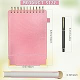 【A5 TOP SPIRAL NOTEBOOK】This 5.9 x 8.5-inch work notebook features a double-wire binding for 360° page rotation and 180° lay-flat use, making it ideal for both right and left-handed users. Perfect for writing, sketching, note taking, journaling or to do lists, its sturdy design ensures versatility and durability for school, work, or creative projects. 【WATERPROOF LEATHER COVER】The premium waterproof PU leather cover, reinforced with 4 gold-edged corners, protects your pages from wear and tear, making it a stylish meeting notebook with both functionality and elegance. The elastic closure strap keeps your spiral notepad securely closed, while the hardcover design allows for comfortable handheld writing no matter where you are. 【THICKER LINED PAGES】This meeting notebook for work has 240 Pages (120 Sheets) with 100 gsm lined paper, which is thick and prevents ink bleeding effectively, allowing you to enjoy a smooth writing experience. Ivory white paper with 0.75 cm line spacing is perforated for easy tear-out with clean edges, a great hardcover spiral notebook for students, professionals, and creatives. 【WITH PEN & PEN HOLDER】This notebook for work comes with a sleek metal pen, a pen loop, and a built-in back pocket for storing postcards, notes, etc. The double-wire binding also securely holds additional pens, offering convenience for on-the-go use. The included sticky divider tabs help you organize and categorize your notes effortlessly, ensuring easy access and organization of your notes by topic, project, or date. 【GREAT GIFT】Available in A4 and A5 sizes with 7 elegant colors (black, brown, navy blue, grey, pink, green, purple), this top bound spiral notebook is perfect for using as journaling notebooks, steno pads or legal pads. Whether for school, work, meetings, or as a thoughtful gift for birthdays, Father’s Day, Christmas, graduations, or Valentine’s Day, it combines functionality with sophistication.