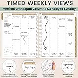 8.5” x 11” WITH VERTICAL WEEKLY LAYOUT & MONTHLY VIEWS: 2 page monthly overview spreads and spacious weekly views run Calendar Year, January 2026 through December 2026. Weekly views are vertical with hourly time slots. PREMIUM FEATURES: Monthly tabs, deluxe 110gsm bright white bleed-resistant paper, recyclable metal lay-flat spiral binding, back inside storage pocket, and an interchangeable cover with 3 designs provided. BONUS ELEMENTS: Packed with life coaching worksheets and inspirational features to help you set and achieve all of your goals for the year: personal mission statement prompt and yearly goal setting page, weekly scheduling template, values page, habit tracking, vision board, monthly spending log, 12 notes pages, inspirational quotes, monthly challenges, and more! SCROLL DOWN / VISIT BRAND STORE FOR FULL COLLECTION: Visit our storefront to see more inspirational office supplies for women! AMAZON FORCE FOR GOOD AWARD WINNER: A portion of every purchase supports community initiatives, empowering women and fostering positive change. Makes a great gift item for students, teachers, moms, and professionals.