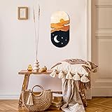 Kas Home Boho Sun and Moon Wall Art Wooden Sunrise Moon Landscapes Nature Wilderness Wall Decor Minimalist Sculpture Hanging Rustic Art Decor For Bedroom Living Room Office(Yellow, 8" x 16")