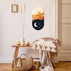 Sun and Moon Wall Decor – Featuring intricate sun and moon motifs, this wall art embodies the harmony of day and night, making it a perfect addition to bohemian-themed decor. Premium Material – 16”x 8” wood wall art designed with gallery-style made of high-quality wooden with HD print grain finish, the sturdy construction ensures durability and an exceptional finish that will last for years to come Ready To Hang – Each moon wall art is lightweight and ready to hang, it comes with a sturdy hook on the back for effortless installation, quick and hassle-free. Versatile Decor - Ideal for any space, living rooms, bedrooms, nurseries, or even office settings. Our boho wall art adds a touch of whimsy and warmth wherever it's displayed. A wonderful gift for your families, friends, partner, business associate, and more. Our sun and moon decor shipped speedily and securely by Amazon in super-strong protective packaging. If you have any questions about the product, our customer service is free-hassle for you to resolve.