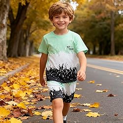 Material: The set is made of high-quality blended cotton, which is moisture absorbing, breathable, skin friendly, and cool, suitable for boys to wear all day in spring and summer. Comfortable fabrics allow boys to move freely in this spring and summer season. The cool print design makes the colors no longer monotonous, making the boy's outfit more handsome and cute. Paired with printed shorts of the same color, the overall look becomes more fashionable and personalized. The elastic waistband is easy to put on and take off, and the overall outfit is eye-catching, making your boy lively and cute. Occasion: Cool design will make your boy like to wear it. Comfortable fabrics are suitable for boys to engage in various activities in spring and summer, whether it's outdoor play or home entertainment, they are an essential choice for parents. Especially suitable as the preferred gift for daily wear in spring and summer. Packaging: The set includes a round neck printed top and a pair of printed shorts, with a stylish and cute overall design. Size: The set comes in multiple sizes, suitable for boys aged 4-8T, and the matching design is easy for busy parents to make a choice.