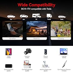 【Patented Product (Design Patent No. US D785,565 S). New Feature: Input Voltage Range 11-17V. 】The upgraded BESTEK power inverter is specifically designed for Tesla Model Y’s 16V accessory socket, a feature unmatched by other inverters in the market. 【Powerful 300W Car Power Inverter】This car power converter provides 300W continuous output power and 700W peak surge power when the load starts. It is equipped with 2 US standard AC outlets, 2 USB charging ports, which is perfect for charging laptops, phones, breast pumps, CPAP machines, cameras, nebulizers, game consoles, etc. 【PD30W & QC18W Fast Charging】300W car charger adapter supports PD30W (USB-C interface) and QC18W (USB-A interface) high output. The PD 30W interface can provide fast charging for iPhone series phones. The 18W QC 3.0 interface can charge most Android devices from 0% to 80% in 30 minutes. 【Quiet and High Efficiency】Our power inverter adopts high efficiency circuit design and advanced heat dissipation technology, which can effectively reduce energy consumption and working noise. Ideal for road trips, camping, and mobile working. 【Safe Protection & Reliable】Built-in intelligent chip, the car plug adapter provides multiple protections against short-circuit, overload, overvoltage and overheating. The metal housing is ultra compact and lightweight, it protects well against any drops or impacts that are natural on road trips or spending time outdoors. 【 What You Get】1 x Power Inverter with Cigarette lighter , 1 x Manual. (Note: Clamps not included.)