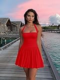 Kaximil Women's Sexy Halter Corset Mini Dress Bubble Ruched Waist Club Party Dresses with Built-in Shorts