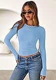 SIZE ATTENTION: XS=US 0-2, S=US 4-6, M=US 8-10, L=US 12-14, XL=US 16-18, XXL=US 20. Womens T Shirts Made from Ultra-Soft and Stretchy Ribbed Knit Material. Premium Fall Tops for Women Ensure Comfort Whether You're Lounging at Home or Going out FEATURES: Long Sleeve Shirts for Women; Womens Fall Tops; Solid Color Casual Tops for Women; Crew Neck Workout Tops for Women; Ribbed Tops for Women; Fitted T Shirts for Women; Basic Tops for Woman; Fall Outfits for Women; Fashion Clothing VERSATILE DETAILS: Tshirts Shirts for Women Designed with Classic Crewneck and a Slim Fit Silhouette, Hugs your Body in all the Right Places and Enhances your Natural Curves. Ribbed Knit Adds Texture to the Womens Long Sleeve Tops ESSENTIAL WARDROBE STAPLE FOR EVERY SEASON! Going Out Tops for Women Can Be Easily Paired with Jeans, Pants, Skirts, Vests, Jackets or Blazers, Its Solid Color Style Makes it a Versatile Womens Basic Tops for any Casual Occasion COLOR OPTION: Womens White Tee Shirt; Beige Plain T Shirts for Women; Brown Womens Casual Tops; Black Tight Shirts for Women; Grey Fitted Tops for Women; Khaki Womens Fall Clothes; Light Blue Date Night Tops for Women; Navy Blue Cute Summer Tops for Women