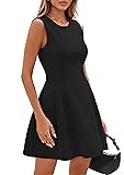 Tips: XS=US 0-2, S=US 4-6, M=US 8-10, L=US 12-14, XL=US 16. Crafted from lightweight, breathable fabric with just the right amount of stretch, this dress drapes over your curves gracefully while offering complete freedom of movement Chic Designs: The classic fit and flare silhouette features a fitted bodice that gracefully transitions into an a-line skater skirt, creating a flattering shape for all body types. Make a stunning statement with this sleeveless dress Matching Style: Dress it up with heels and statement jewelry for evening elegance, or pair it with flats for a relaxed daytime look. Layered under a tailored blazer, it transforms into polished office attire ideal for business settings Occasions: The stunning solid color adds a pop of confidence to your wardrobe and the simple design is ideal for various occasions from casual outings to semi-formal events, wedding, cocktail, dinner party, graduation, date night, office wear Color Options: white graduation dresses; beige short formal dress; pink date night dress for women; green homecoming dresses; red party dress for women; blue cocktail dress for women wedding guest; black office dress; dusty blue dinner dress