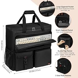 PC Travel Case for Mid-Tower Desktops: Fits most ATX mid-tower desktops (external: 20.08"L × 9.06"W × 19.69"H; internal max: 19.88"L × 8.86"W × 19.69"H). Rear buckle fastener prevents tipping. Measure before purchase. A reliable desktop carrying case for standard and mid-tower PCs, also functions as a protective computer tower case during transport Smart Storage for Full Desktop Setup: Dedicated compartments for keyboard, mouse, headset, and cables + expandable side pockets. Full-height mesh panel organizes accessories, making it a versatile desktop carrying case and PC carrying case that transforms into a portable workstation for travel or office relocation Heavy-Duty Protection for Gaming & Travel: Reinforced base and anti-slip feet enhance stability. Thickened padding guards against impacts and scratches. Full-height mesh pocket holds tools/accessories. Ideal for gaming travel case needs, LAN parties, or as a durable PC travel case for commutes and office moves Weatherproof & Dust-Resistant PC Case Cover: Durable Oxford fabric resists rain and dust. Lining minimizes dust buildup, ensuring heavy-duty protection for your computer tower case or desktop computer case during storage or transport. Acts as a reliable PC case cover for long-term use Ergonomic Design for Portable Computer Transport: Adjustable chest straps distribute weight comfortably. Padded handle and anti-tip buckle enable easy mobility. A professional PC carrying case and computer travel case perfect for gaming events, business trips, or as a portable computer carrying case for frequent movers