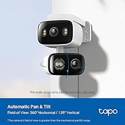 𝐃ual 𝟐𝐊 𝐋enses for 𝐖ide 𝐂overage and 𝐏recise 𝐙oom - Includes a fixed 2K lens with a 125° FOV, and a separate 2K pan/tilt lens with 6mm telephoto for sharp, zoomed-in details. Independent lens positioning allows precise monitoring. 2.4 GHz Wi-Fi required. 𝐏anoramic 𝐂overage of 𝐓wo 𝐀reas at 𝐎nce - A fixed wide-angle lens keeps one area in view, while the pan/tilt lens offers a 360° horizontal and 152° vertical view of another. The camera's field of view is greater than the mechanical pan/tilt range. 𝐘our 𝐈ndoor & 𝐎utdoor 𝐒urveillance 𝐒olution - Tapo C246D Duo features an IP65-rated design that withstands heavy and rain and dust. Place it on a table or mount it to a wall - installation is easy anywhere. 𝐀𝐈-𝐏owered 𝐃etection 𝐖ith 𝐍o 𝐅ees - Receive accurate alerts for people, pets, vehicles, and baby cries using built-in AI detection. Choose which types of detection trigger notifications for more relevant alerts. 𝐒ynchronized 𝐒mart 𝐓racking - When enabled on the Tapo App, the pan/tilt lens automatically tracks motion detected by the fixed camera, delivering comprehensive surveillance so you never miss a moment. 𝐎ne-𝐓ap 𝐒mart 𝐅ocus - Tap anywhere on the live wide-angle view and the pan/tilt camera will instantly zoom and center the camera on that point. See critical details clearly for more accurate monitoring. 𝐀daptable 𝐍ight 𝐕ision 𝐌odes - Choose between black-and-white IR, full-color with built-in spotlights, or smart auto mode that switches to color when motion is detected. 𝐍o 𝐒ubscription 𝐒torage 𝐎ption - Store recordings on a microSD card at no cost◇ (up to 512GB, sold separately) or subscribe to Tapo Care's cloud storage.§ 𝐂ustomizable 𝐏rivacy and 𝐃etection 𝐙ones - Easily set privacy zones to block recordings in personal areas and define detection zones to receive alerts only from key areas. Protects your privacy while focusing on what matters most. 𝐎ur 𝐂ybersecurity 𝐂ommitment - Tapo is a signatory of the U.S. Cybersecurity and Infrastructure Security Agency’s (CISA) Secure-by-Design pledge. This device is designed, built, and maintained, with advanced security as a core requirement.