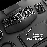 Ergonomic Design by Microsoft: The Sculpt Ergonomic Keyboard is crafted to enhance productivity and performance, promoting a relaxed and comfortable computing experience. All-Day Comfort: Features a cushioned palm rest and a domed keyboard with a split keyset design, positioning your wrists and forearms in a natural, relaxed position. Customizable Wrist Support: Includes a removable elevator and reverse tilt to customize your wrist comfort and maintain a straight, neutral wrist position Efficient Navigation: Equipped with a Windows button for one-touch access to the start menu, a back button for faster navigation, and a screen snipping key for quick copy, paste, and share functions. Secure and Reliable: Offers Advanced Encryption Standard (AES) 128-bit encryption technology for secure data entry and comes with a 1-year limited warranty for peace of mind.