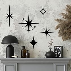 Versatile Sizes: This set includes five uniquely sized pieces (5.2x12 inch, 11x11 inch, 3.5x6.2 inch, 4.3x7 inch, 8x8 inch), ensuring you can create dynamic and eye-catching displays tailored to any space. Adhesive Included: Comes with glue points dots for effortless installation, allowing you to decorate your walls without the hassle of additional tools or materials. Durable Metal Construction: Crafted from high-quality metal, these starburst designs offer long-lasting durability while maintaining a sleek and modern aesthetic appeal. Mid-Century Modern Style: Embrace the iconic mid-century modern look with this stylish wall art that complements both contemporary and traditional home decors effortlessly. Multi-Room Appeal: Perfect for enhancing the ambiance of living rooms, kitchens, bedrooms, bathrooms, offices, and more, adding an artistic touch wherever it’s placed.