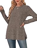 SAMPEEL Womens Sweaters Crewneck Long Sleeve Shirts with Pockets Fall Outfits 2025 Fashion Winter Clothing Side Slit