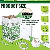 Comprehensive Set: the cardboard box for glasses is a complete set designed for your waste management needs; The set includes 6 sturdy cardboard boxes (12'' L x 12'' W x 20'' H), 6 PE bags, and 1 roll of double sided adhesive tape; The bags have a dimension of about 27.56 x 31.5 inches/ 70 x 80 cm, providing ample space for waste disposal; Additionally, the double sided tape measures about 26.25 ft/ 8 m in length, 0.71 inch in width, it can be affixed to the box's bottom, ensuring stability Laboratory Glass Disposal Box: our cardboard box for glasses is equipped with transparent PE bags for storing broken glass fragments and leaked liquid; By merely flipping the lid to the closed state when the box is full, it acts as a secure and puncture proof container for storing broken glassware Durable and Sturdy: this broken glass disposal box is made of three sheets of hard corrugated cardboard, exuding strength and lightness; Its durability ensures efficient waste disposal, and its recyclable nature advocates careful disposal; It's a reliable solution for your next party or event, providing a clean appearance and promoting environmental consciousness Easy to Use: the disposable trash bins for parties feature clear printing in green graphics, which makes them easy to identify, subsequently reducing the chances of accidents; Clearly marked and easy to spot, even in crowded environments; It features self locking flip covers on the bottom and lid, resulting in quick, easy installation and sanitation Widely Application: these cardboard trash cans for events are a nice choice for event managers or individuals who regularly host parties; They offer a practical solution for waste management that effectively meets various disposal needs; From outdoor activities, weddings, offices, buildings, parties, picnics, barbecues, to camping, these reliable trash cans are the answer to your disposal needs