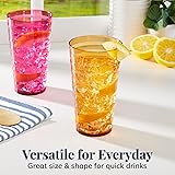 Enjoy everyday drinks with confidence using our American-made stackable tumblers, a set of 16 18-ounce glasses designed for your convenience. Crafted from BPA-free plastic, these cups ensure safety without compromising quality, making them ideal for both indoor and outdoor use. These cups feature a smooth top edge for easy sipping, a unique ripple line pattern, adding a touch of elegance to your table setting while maintaining a lightweight feel for easy handling. This design will add an updated look to your kitchen aesthetic and easily stacks to save space on cabinet shelves. Say goodbye to worries about breakage with our shatter-resistant tumblers, perfect for parties, family gatherings, and outdoor events. This classic style plastic glass set is a great addition to any college dorm room, first apartment, rv, and camper. Consider adding these as a wedding registry gift for a new household. Stackable and dishwasher safe, these tumblers are designed for easy storage and cleanup, adding convenience to your daily routine. Entertain outdoors at the patio, pool, or hot tub with these durable and shatterproof pieces. The 18oz cup (3.50" Diam x 6.00" H) in jewel tone colors is versatile and suitable for any drinkware need.
